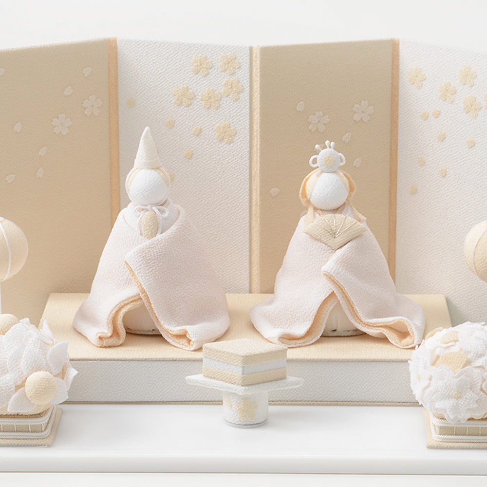 白色とベージュの組み合わせなので、インテリアにも馴染みやすく飾りやすい雛人形です。